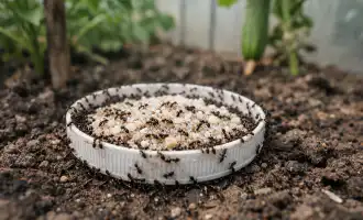 Στρώσιμο του θάμνου με οργανική ύλη για τη διατήρηση της υγρασίας.