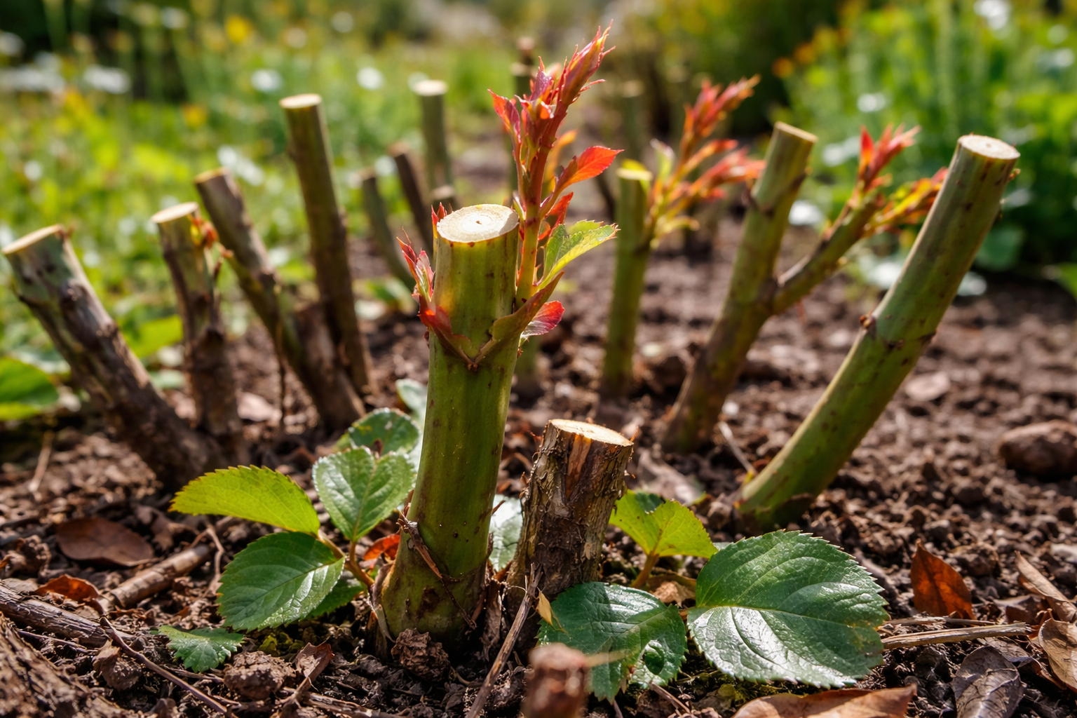 Μια μυστική απόχρωση: πάντα να απομακρύνεστε ακριβώς μισό εκατοστό από τον επιλεγμένο οφθαλμό και να κάνετε ένα λοξό κόψιμο υπό γωνία σαράντα πέντε μοιρών, έτσι ώστε η πρωινή δροσιά ή το νερό της βροχής να μπορεί να κυλήσει ελεύθερα προς τα κάτω χωρίς να προκαλέσει σήψη των νεαρών ιστών.