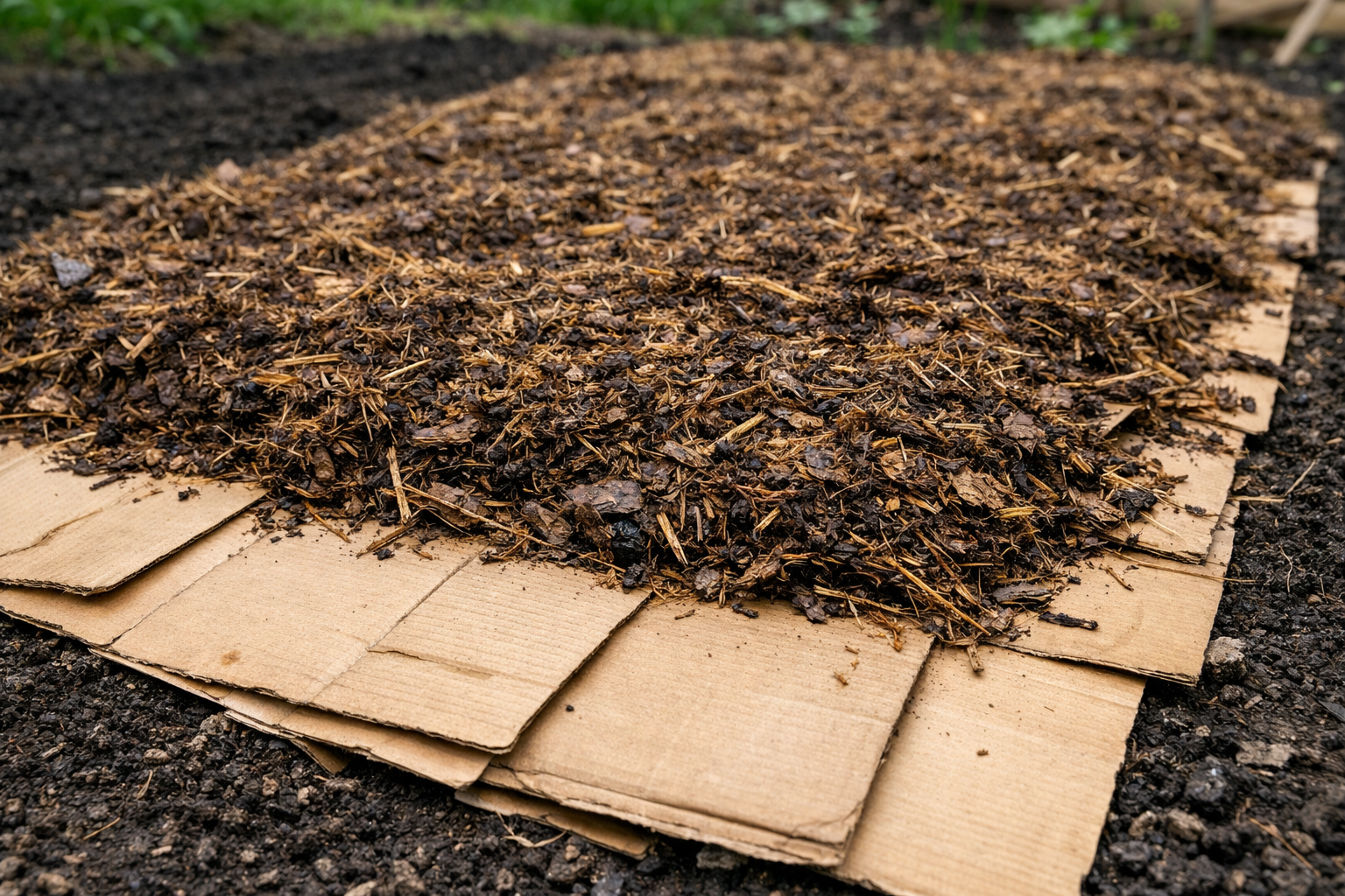 Τοποθετήστε φύλλα από βαρύ κυματοειδές χαρτόνι απευθείας πάνω από το περσινό γρασίδι