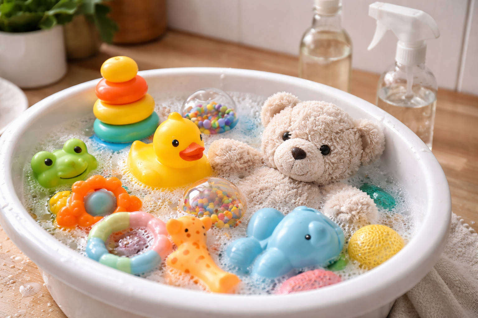 Κάθε μαμά έρχεται αντιμέτωπη με βουνά από κολλώδεις κουδουνίστρες και αρκουδάκια, τα οποία φέρουν μια αόρατη απειλή για την ανοσία του παιδιού. Σε αυτό το άρθρο θα μοιραστώ μια αποδεδειγμένη και απολύτως ασφαλή μέθοδο απολύμανσης των αγαπημένων πραγμάτων του μωρού σας, η οποία θα σας γλιτώσει χρόνο και νεύρα.