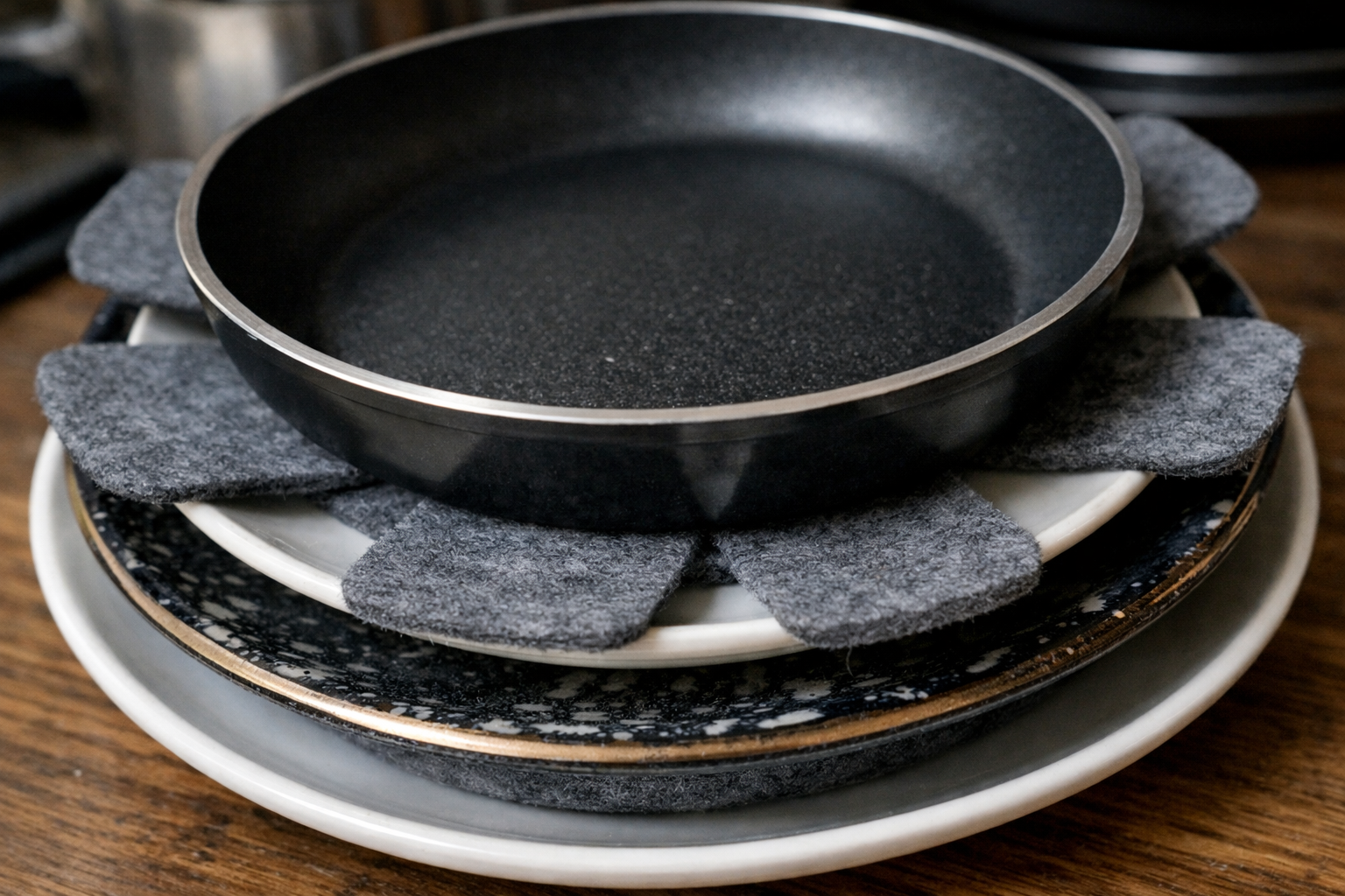 Η σωστή οργάνωση του χώρου και η προσεκτική φροντίδα του εξοπλισμού της κουζίνας παρατείνει σημαντικά τη διάρκεια της άψογης λειτουργίας του. Χρησιμοποιώντας το σωστό προστατευτικά πιάτων μεταξύ κάθε αντικειμένου, έχετε την εγγύηση ότι θα διατηρήσετε τις επιφάνειες λείες και θα προστατεύσετε τα ευάλωτα κεραμικά από το σπάσιμο. Το μαγειρικό σας οπλοστάσιο θα παραμείνει σε άριστη κατάσταση ακόμα και με εντατική καθημερινή χρήση.