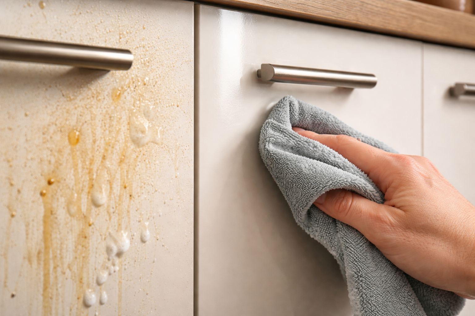 Οι μετώπες MDF καλύπτονται γρήγορα με δακτυλικά αποτυπώματα και κολλώδη λίπη και ο ακατάλληλος καθαρισμός μπορεί να καταστρέψει την εμφάνισή τους για πάντα. Θα σας δείξω μια ασφαλή μέθοδο που θα επαναφέρει στα έπιπλά σας την αρχική τους λάμψη χωρίς σκληρά χημικά και περιττή προσπάθεια.