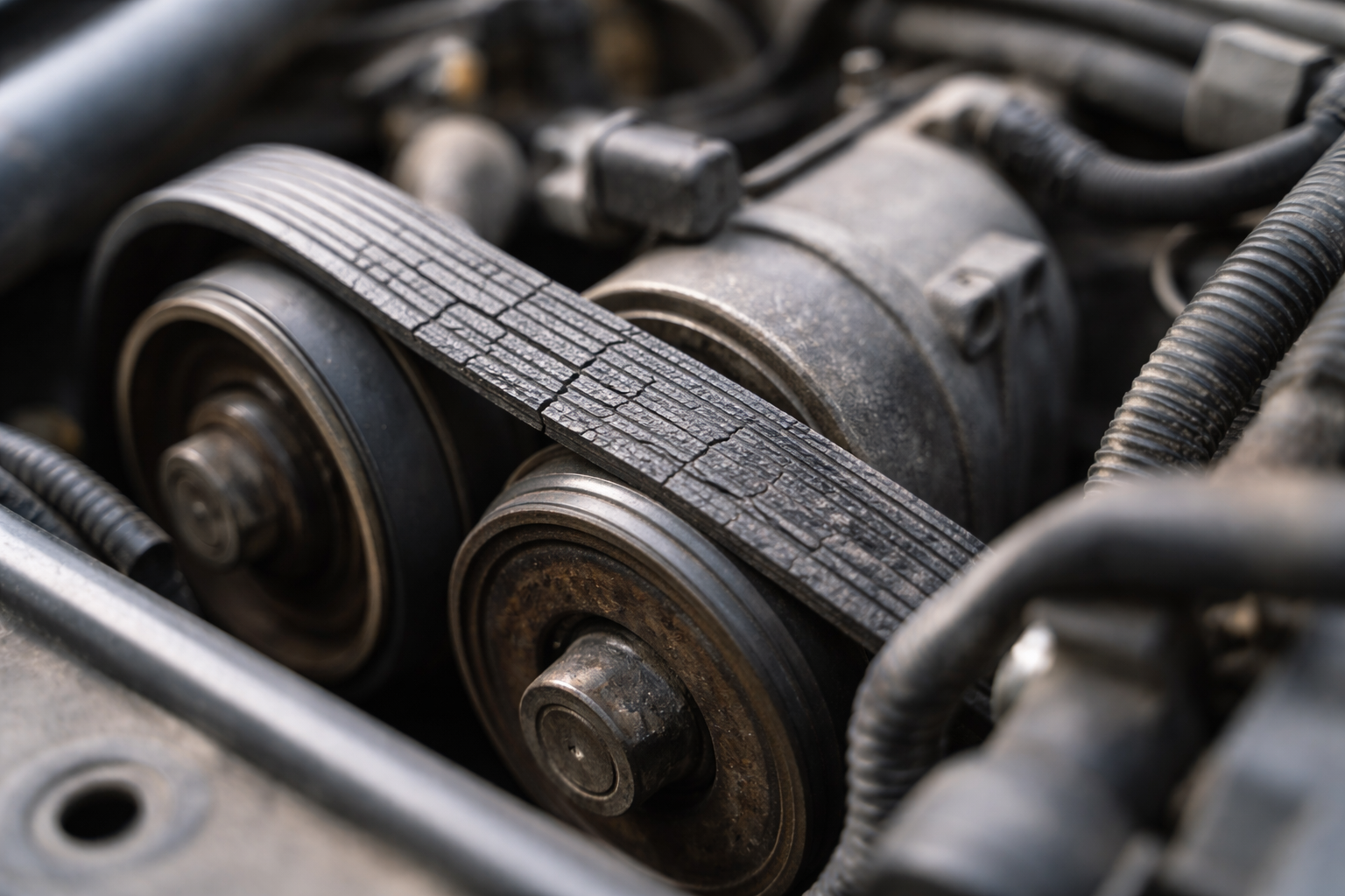Ανοίξτε το καπό και επιθεωρήστε οπτικά ιμάντες μετάδοσης κίνησης για βαθιές ρωγμές ή αποκολλήσεις.