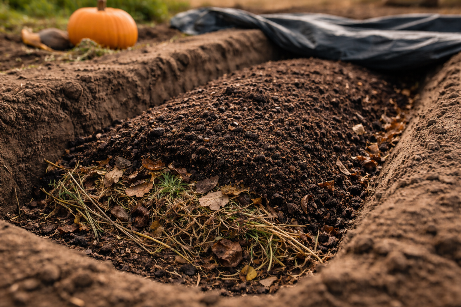 Αφαιρέστε το επιφανειακό χώμα και τοποθετήστε ένα παχύ στρώμα οργανικής ύλης στον πυθμένα της τάφρου