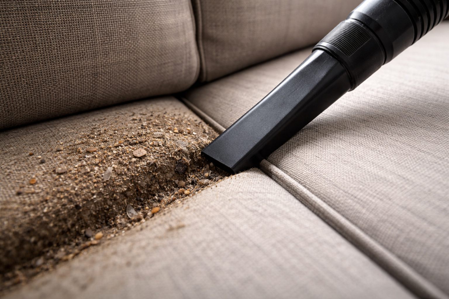 Μυστικό: Πάντα να σκουπίζετε με ηλεκτρική σκούπα τις ραφές, τις πτυχώσεις και τους αρμούς των επίπλων χρησιμοποιώντας ένα στενό ακροφύσιο ρωγμών, καθώς εκεί συσσωρεύεται έως και το ογδόντα τοις εκατό όλων των ρύπων και της άμμου.