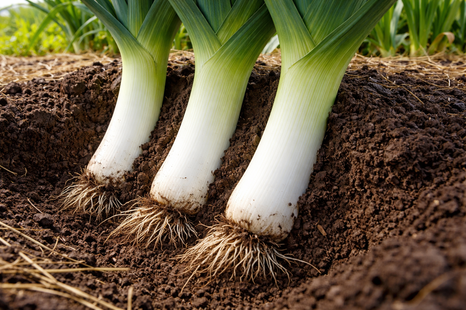 Καθ’ όλη τη διάρκεια του καλοκαιριού, αναπληρώνετε σταδιακά το χώμα στην τάφρο καθώς το στέλεχος μεγαλώνει, είναι αυτή η συνεχής περισυλλογή που ευθύνεται για την καλή λεύκανση του πράσου.