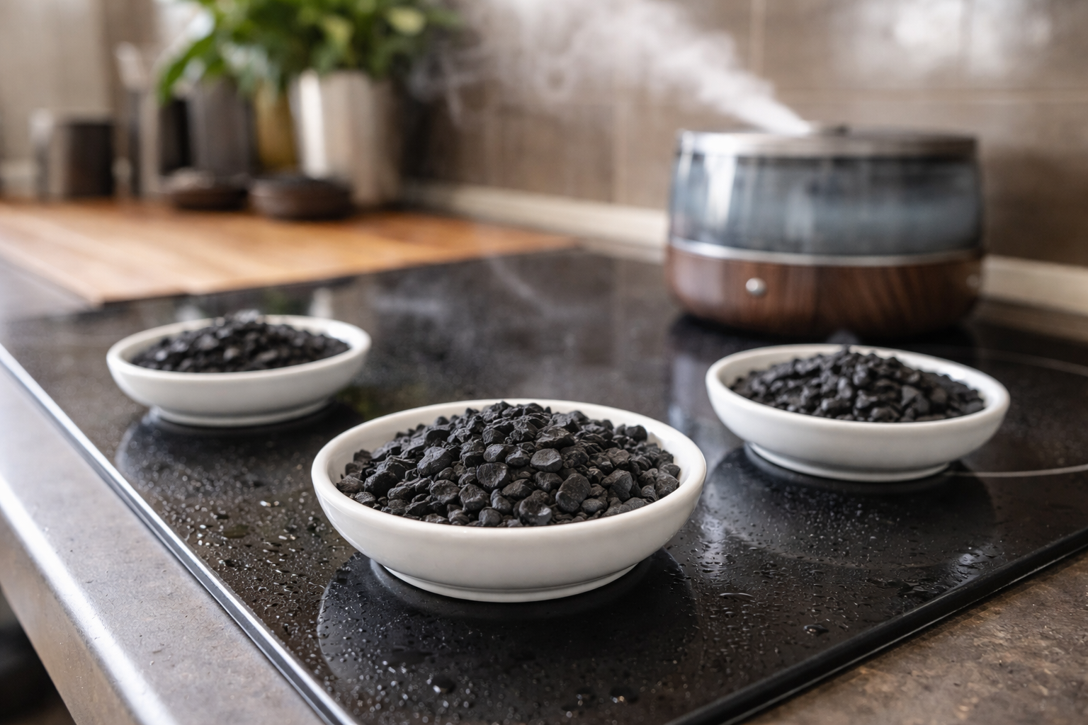 Χρήση ενεργός άνθρακαςαπλώνεται σε πιατάκια.