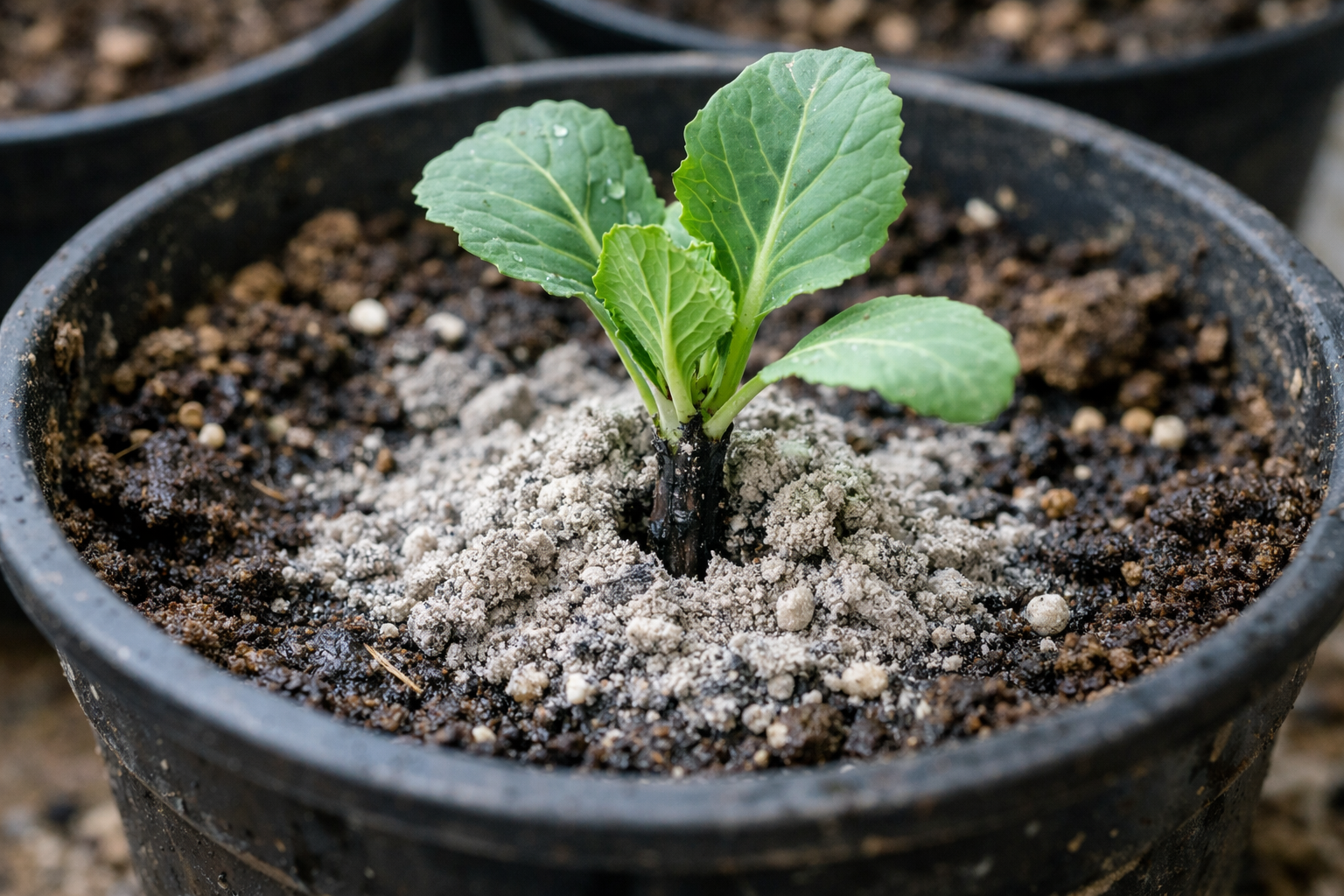 Το βασικό μου μυστικό για ένα δυνατό λάχανο: προσθέστε πάντα περλίτη ή βερμικουλίτη στο μείγμα χώματος και ποτίστε μόνο μέσω ενός δίσκου για να διατηρείτε το ανώτερο στρώμα χώματος στεγνό.