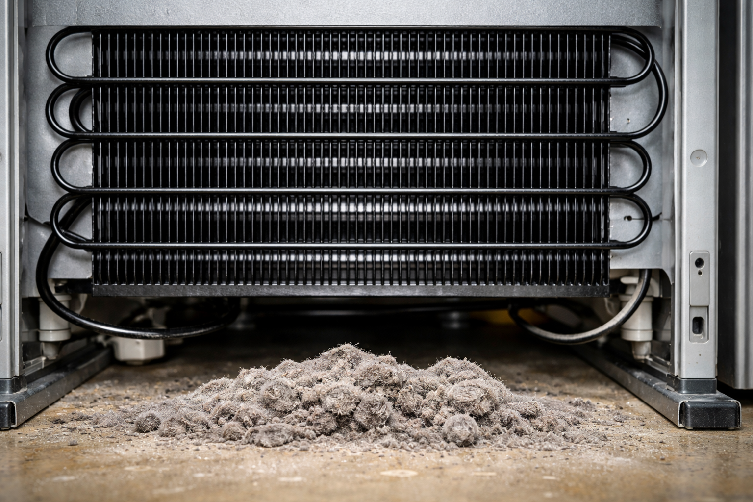 Η αποτελεσματική λειτουργία οποιουδήποτε ψυκτικού εξοπλισμού εξαρτάται άμεσα από μια διαδικασία που ονομάζεται ανταλλαγή θερμότητας. Στο πίσω μέρος ή στο κάτω μέρος της συσκευής υπάρχει ένας ειδικός μεταλλικός σωλήνας καμπυλωτός σε σχήμα φιδιού – αυτός είναι ο συμπυκνωτής. Μέσω αυτού του τμήματος η θερμότητα από τον εσωτερικό θάλαμο αποβάλλεται προς τα έξω. Όταν συσσωρεύονται χνούδια και τρίχες κατοικίδιων ζώων στις νευρώσεις αυτού του τμήματος, σχηματίζεται ένα είδος “παλτού”, το οποίο εμποδίζει τη μεταφορά θερμότητας.