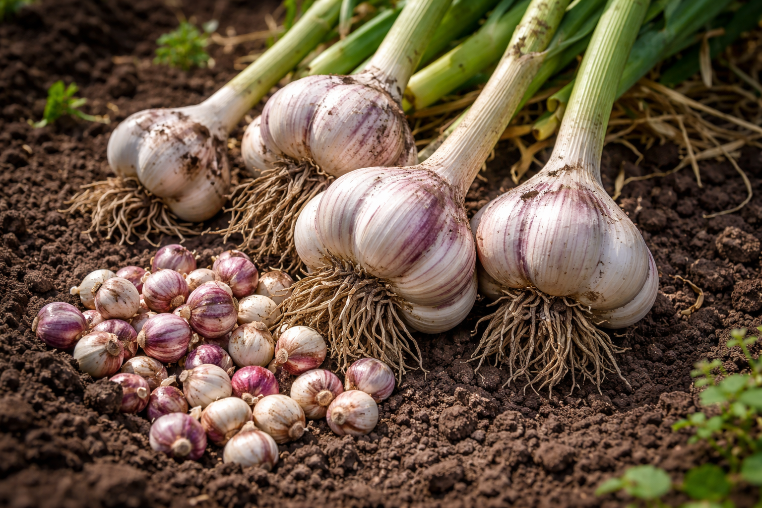Η συγκομιδή γίνεται όταν τα κατώτερα φύλλα αρχίζουν να ξηραίνονται. Το κυριότερο είναι να μην κρατάτε το σκόρδο στο έδαφος για πολύ καιρό, διαφορετικά τα λέπια θα σκάσουν και οι σπόροι θα χάσουν τη διάρκεια ζωής τους. Η προσεκτική ξήρανση στη σκιά κάτω από ένα στέγαστρο εξασφαλίζει ότι η σοδειά θα είναι ασφαλής μέχρι την επόμενη εποχή.