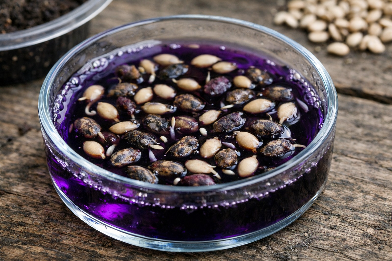 Ξεπλένετε πάντα τους σπόρους με καθαρό τρεχούμενο νερό αμέσως μετά την αφαίρεσή τους από το διάλυμα, διαφορετικά τα υπολείμματα του ισχυρού οξειδωτικού παράγοντα μπορεί να προκαλέσουν σοβαρή βλάβη στα ευαίσθητα έμβρυα καθώς βλαστάνουν.