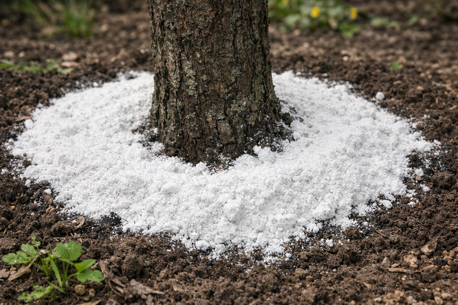 Η σκόνη πρέπει να διανέμεται κατά μήκος της περιμέτρου της προεξοχής της κόμης, όπου βρίσκονται οι ενεργές θρεπτικές ρίζες, πάντα μακριά από τον κορμό.