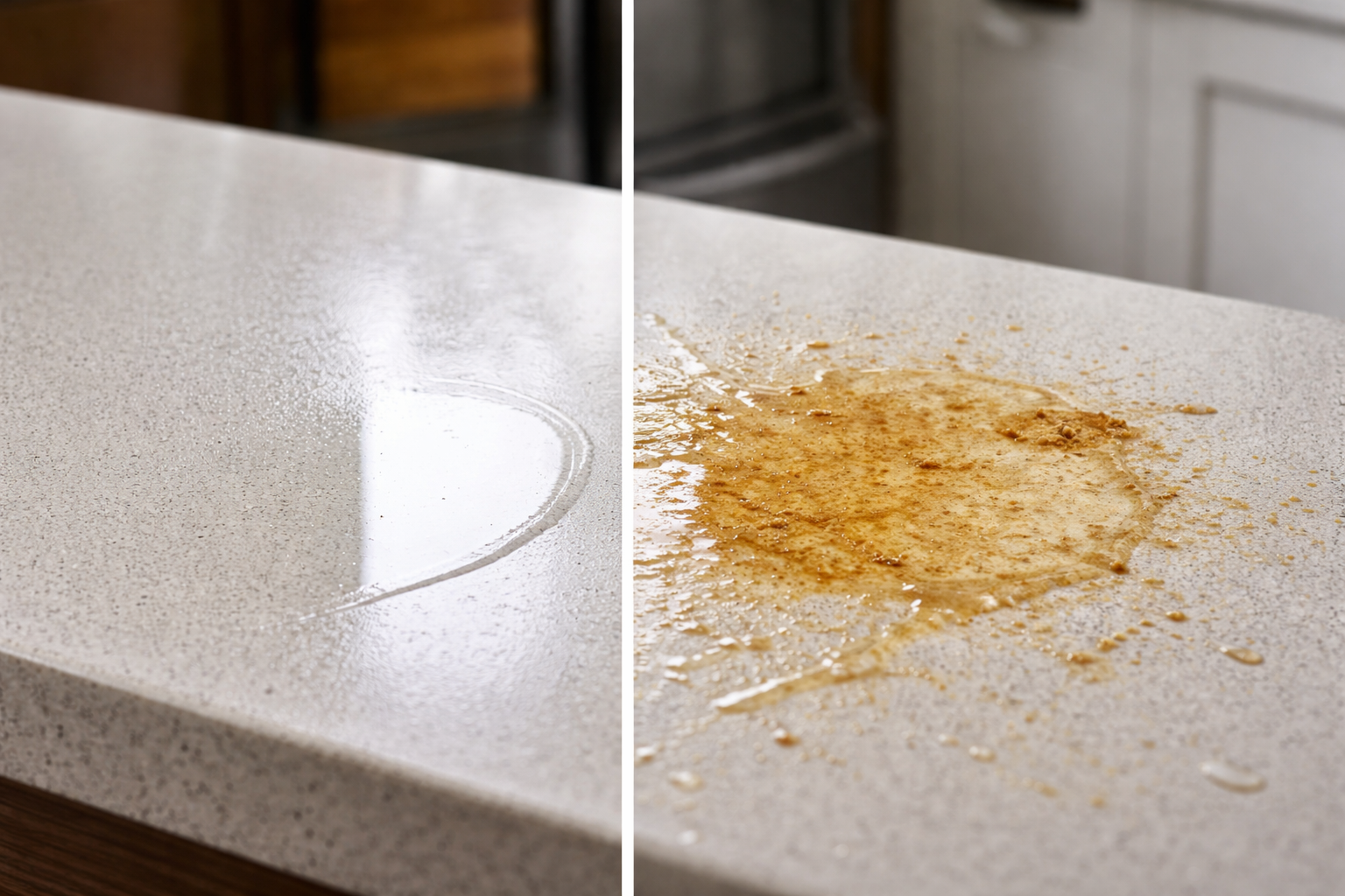 Το μυστικό της τέλειας καθαριότητας δεν βρίσκεται στις ισχυρές χημικές φόρμουλες, αλλά στον σωστό συγχρονισμό. Όταν οποιαδήποτε υγρή ουσία προσκρούει στον πάγκο εργασίας ή στο δάπεδο, τίθεται σε κίνηση μια αναπόφευκτη φυσική διαδικασία. Πρώτον, υπάρχει τριχοειδές φαινόμενοτο οποίο προκαλεί την ενεργή διείσδυση της υγρασίας στους αόρατους μικροπόρους του υλικού.