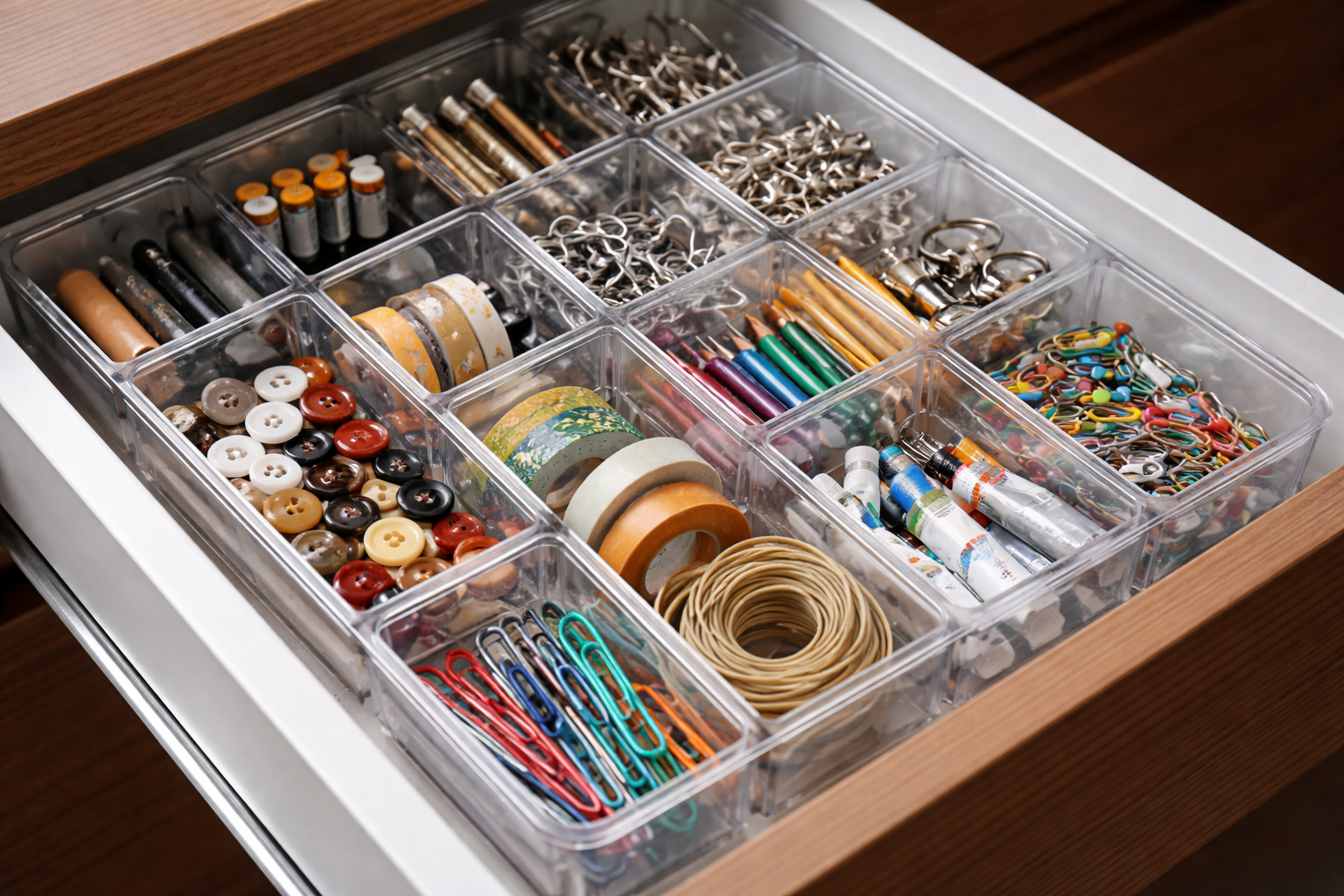Στην πράξη, δεν είναι η αφθονία των πραγμάτων που δημιουργεί χάος, αλλά η έλλειψη ενός κατάλληλου συστήματος αποθήκευσης. Αν απλά τα ρίχνετε όλα σε ένα μεγάλο κουτί, τα μικρά αντικείμενα θα κατακάθονται πάντα στον πάτο και θα μπερδεύονται μεταξύ τους. Το κύριο μυστικό είναι η χρήση εξειδικευμένων ενοτήτων και η αυστηρή κατηγοριοποίηση.