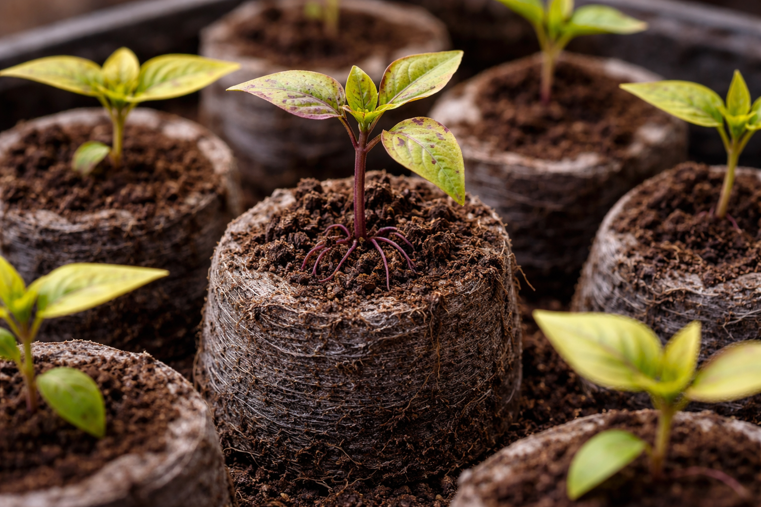 Οι πιπεριές είναι εξαιρετικά ευαίσθητες ριζικό σύστημαΤο κύριο μειονέκτημα της τύρφης είναι η φυσική της οξύτητα. Το κύριο μειονέκτημα της τύρφης έγκειται στη φυσική της οξύτητα. Ακόμα και αν ο κατασκευαστής αναφέρει ότι το έδαφος είναι απενοξειδωμένο, στην πράξη δισκία τύρφης οξινίζονται γρήγορα με την τακτική άρδευση με συνηθισμένο νερό βρύσης. Οι ρίζες της πιπεριάς σε όξινο περιβάλλον σταματούν αμέσως να αφομοιώνουν τον φώσφορο, με αποτέλεσμα την πλήρη διακοπή της ανάπτυξης και ένα ανησυχητικό μωβ χρώμα στα φύλλα.