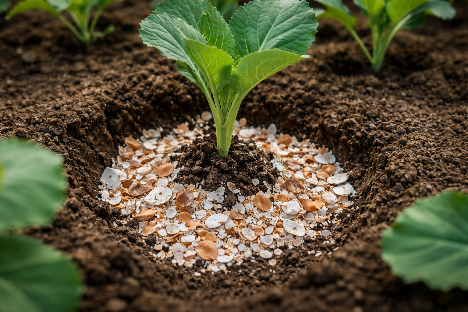 Η βέλτιστη ποσότητα είναι μία μικρή χούφτα καλά αλεσμένης σκόνης ανά φυτό.