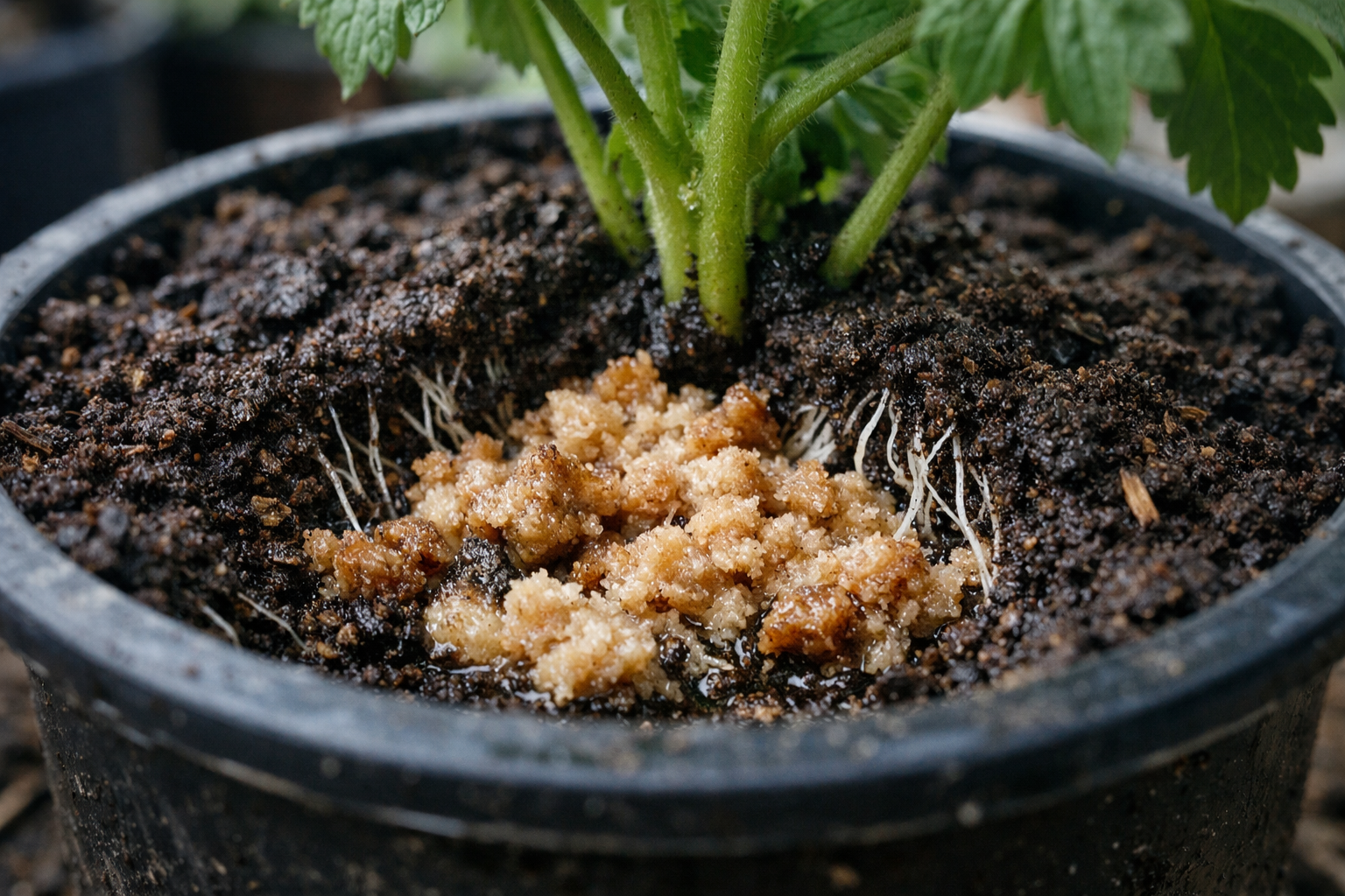Το ψωμί είναι μια εξαιρετική πηγή φυσικού μαγιά, υδατάνθρακες и αμινοξέα. Όταν προσλαμβάνονται στο έδαφος, τα συστατικά αυτά ενεργοποιούν τις ευεργετικές μικροχλωρίδαη οποία ανακυκλώνει την οργανική ύλη και καθιστά τα θρεπτικά συστατικά πιο διαθέσιμα στις ρίζες. Αυτό δημιουργεί ένα φαινόμενο “θερμού κρεβατιού” ακριβώς μέσα στη γλάστρα των σποροφύτων, το οποίο είναι ιδιαίτερα σημαντικό κατά την ψυχρή περίοδο της άνοιξης.