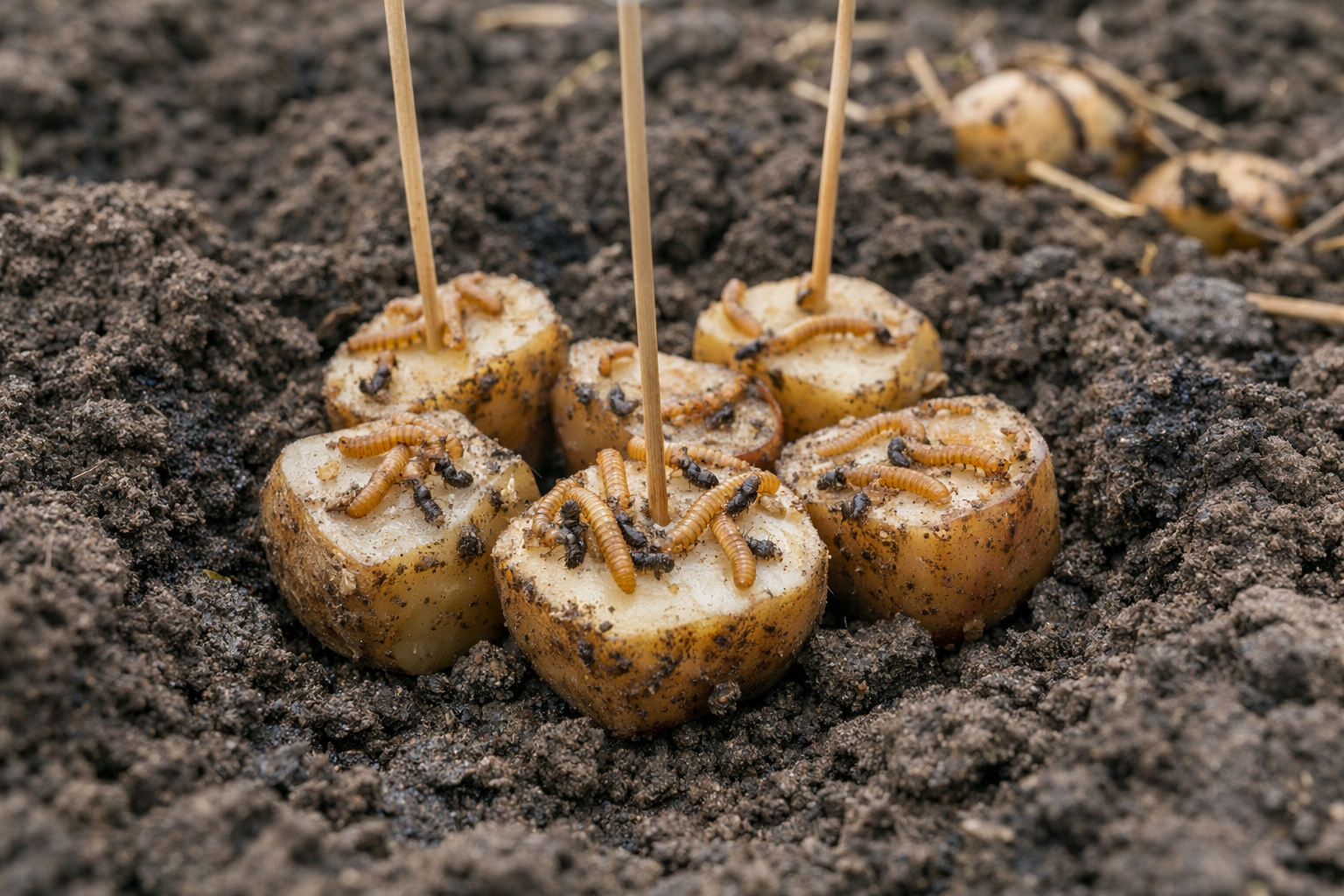 Το κύριο μυστικό μου έγκειται στην προετοιμασία των πατατών για τις ανοιξιάτικες παγίδες – μουλιάζω πάντα τα τεμαχισμένα κομμάτια σε νερό για 24 ώρες, ώστε η αμυλώδης οσμή τους να γίνει όσο το δυνατόν πιο ελκυστική για τις προνύμφες στο κρύο έδαφος.