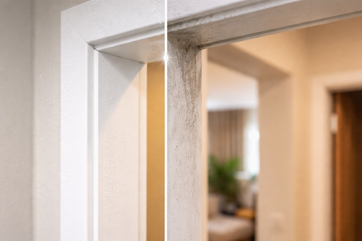 Τα μαρσπιέ των πορτών παραμένουν η περιοχή που παραβλέπεται περισσότερο κατά τον καθαρισμό, παρόλο που είναι αυτά που συγκεντρώνουν την περισσότερη σκόνη και το σμήγμα από το συνεχές άγγιγμα με τα χέρια. Αν παρατηρήσετε μια παράξενη μυρωδιά μούχλας στο διάδρομο ή σκούρες ραβδώσεις σε ανοιχτόχρωμο ξύλο, το πρόβλημα βρίσκεται σε ξεχασμένα κουφώματα. Θα σας δείξω πώς μια απλή σπιτική λύση θα επαναφέρει τα κουφώματα στην παρθένα εμφάνισή τους μέσα σε λίγα λεπτά και θα δημιουργήσει ένα ισχυρό αντιστατικό φράγμα ενάντια στη νέα βρωμιά.