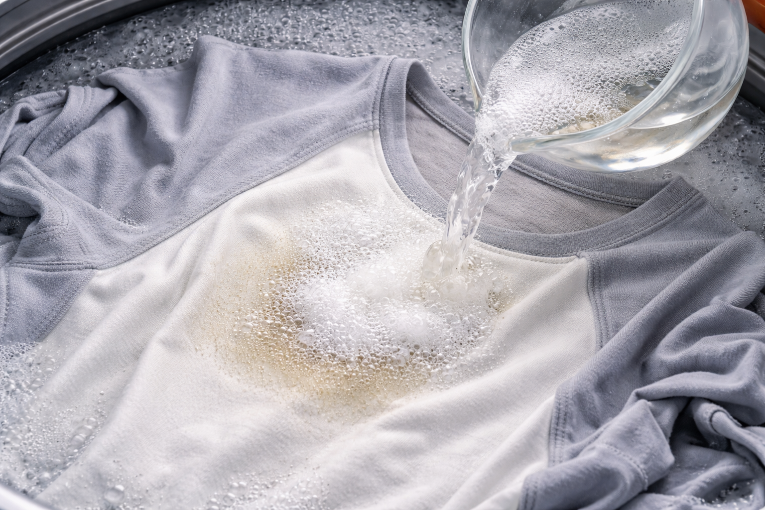 Μυστική απόχρωση: Ποτέ μην αναμειγνύετε ξύδι και μαγειρική σόδα απευθείας στο ύφασμα πριν το πλύσιμο. Η αντίδρασή τους εξουδετερώνει η μία τις ευεργετικές ιδιότητες της άλλης, αφήνοντας μόνο ένα θεαματικό φριζάρισμα, γι’ αυτό χρησιμοποιήστε τα αυστηρά ξεχωριστά.