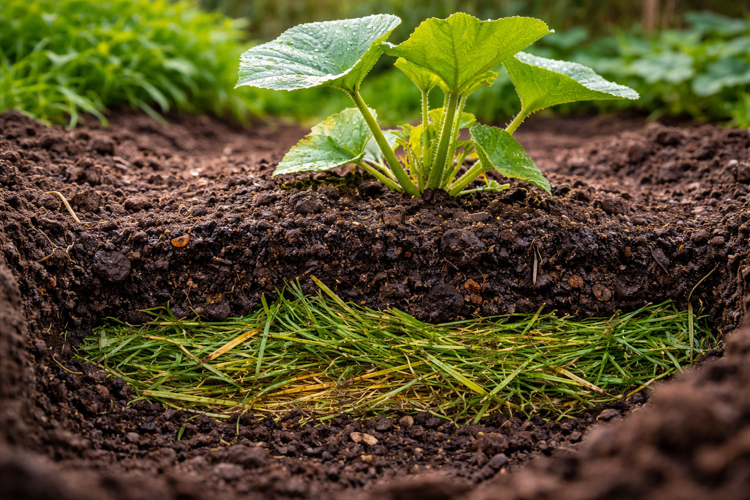 Το κύριο μυστικό της γρήγορης εκκίνησης είναι η προσθήκη φρέσκου κομμένου χόρτου στον πυθμένα του λάκκου φύτευσης, το οποίο, όταν αποσυντίθεται, λειτουργεί ως ισχυρή φυσική μπαταρία.