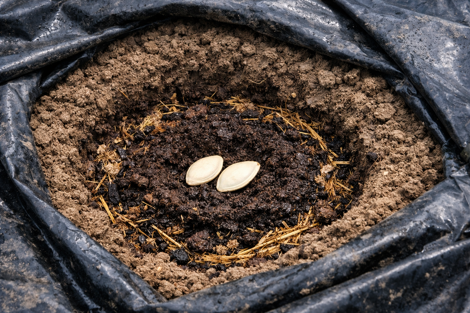 Το σημαντικότερο μυστικό για ένα ισχυρό ξεκίνημα είναι η κάλυψη της προετοιμασμένης τρύπας με μια πυκνή μαύρη μεμβράνη για λίγες ημέρες πριν από τη φύτευση, η οποία επιτρέπει στο έδαφος να συσσωρεύει ηλιακή θερμότητα σε βάθος.