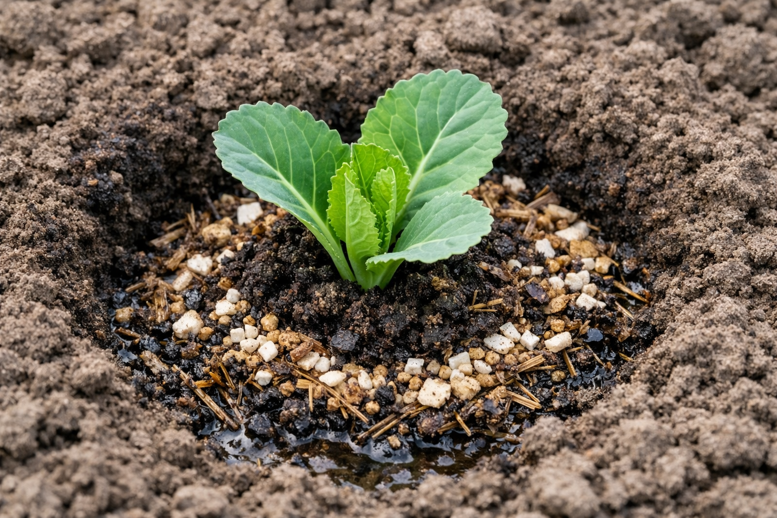 Το έδαφος για την καλλιέργειά μας πρέπει να είναι θρεπτικό και ικανό να συγκρατεί την υγρασία. Σπορόφυτα λάχανου είναι πολύ απαιτητικό για τη δομή του εδάφους. Προετοιμάζω πάντα τα παρτέρια εκ των προτέρων, ώστε το έδαφος να έχει χρόνο να κατασταλάξει και να δομηθεί. Είναι σημαντικό να δημιουργηθεί η σωστή ισορροπία των θρεπτικών στοιχείων ακόμη και πριν φυτέψω τα νεαρά φυτά στο ανοιχτό έδαφος.
