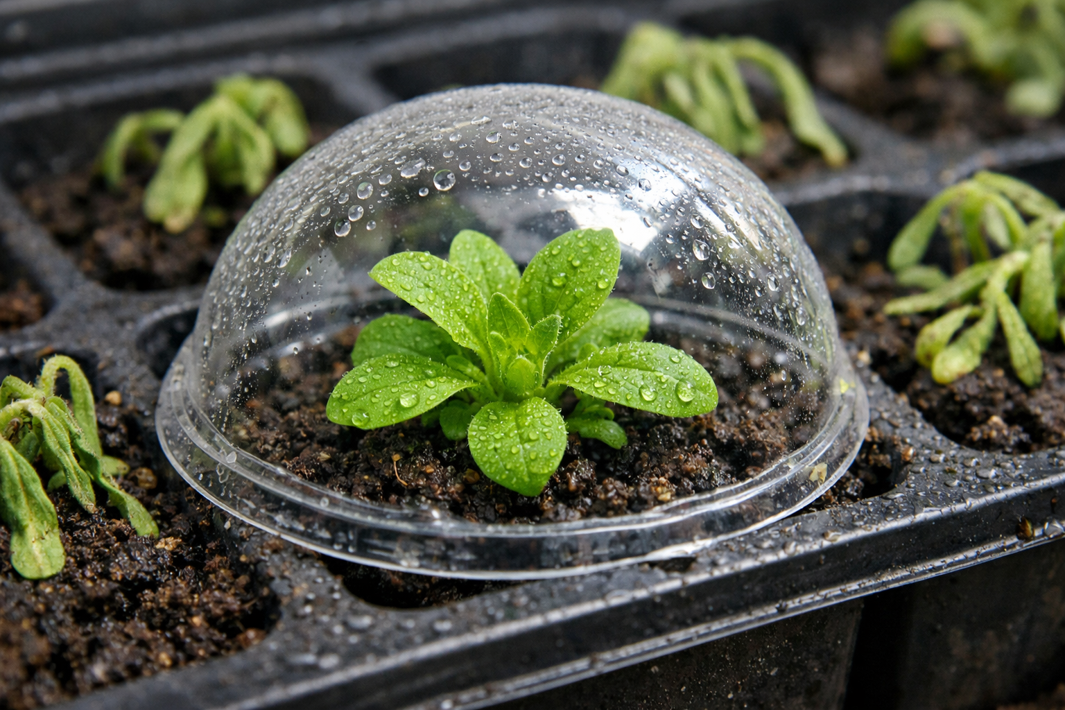 Τις πρώτες ημέρες, τα σπορόφυτα χρειάζονται αυστηρή προστασία από τον άμεσο ήλιο για να αποφευχθεί η κρίσιμη απώλεια υγρασίας και τα εγκαύματα.