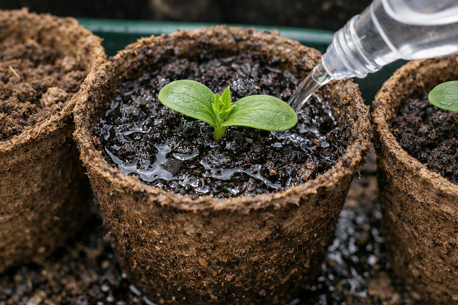 Το κύριο μυστικό της επιτυχίας έγκειται στην προενυδάτωση του ίδιου του δοχείου. Αν βουτήξετε το δοχείο τύρφης σε ζεστό νερό για μερικά λεπτά πριν το γεμίσετε με χώμα, θα σταματήσει να παίρνει υγρασία από το νεαρό φυτό, ενώ η προσθήκη μιας πρέζα τέφρας ξύλου στον πυθμένα θα το προστατεύσει από την ανάπτυξη σάπιων βακτηρίων.