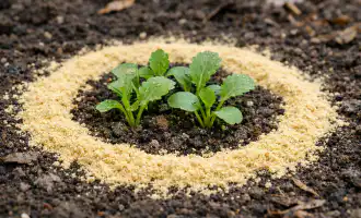 Καλύψτε ελαφρά την ουσία με ένα λεπτό στρώμα χώματος για να αποφύγετε την άμεση επαφή με τις ρίζες.