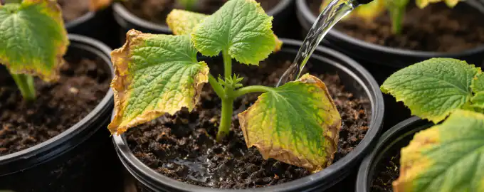 Εφαρμόσατε προσεκτικά λίπασμα για χάρη ισχυρών ριζών, αλλά τα σπορόφυτα αγγουριού ξαφνικά αντέδρασαν με κιτρίνισμα και συρρίκνωση των άκρων των φύλλων.