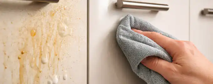 Οι μετώπες MDF καλύπτονται γρήγορα με δακτυλικά αποτυπώματα και κολλώδη λίπη και ο ακατάλληλος καθαρισμός μπορεί να καταστρέψει την εμφάνισή τους για πάντα.